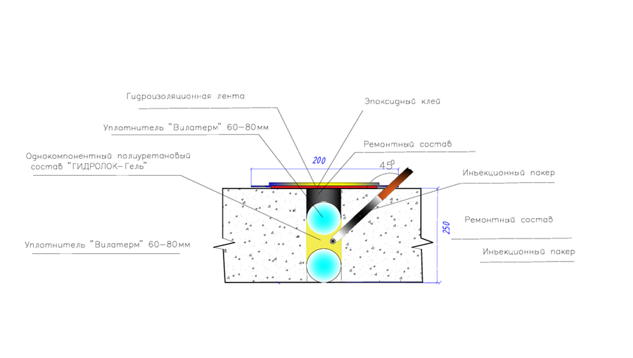 · Инъектирование состава для гидроизоляции (полиуретановый гель)